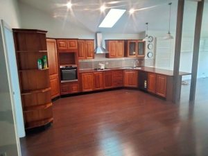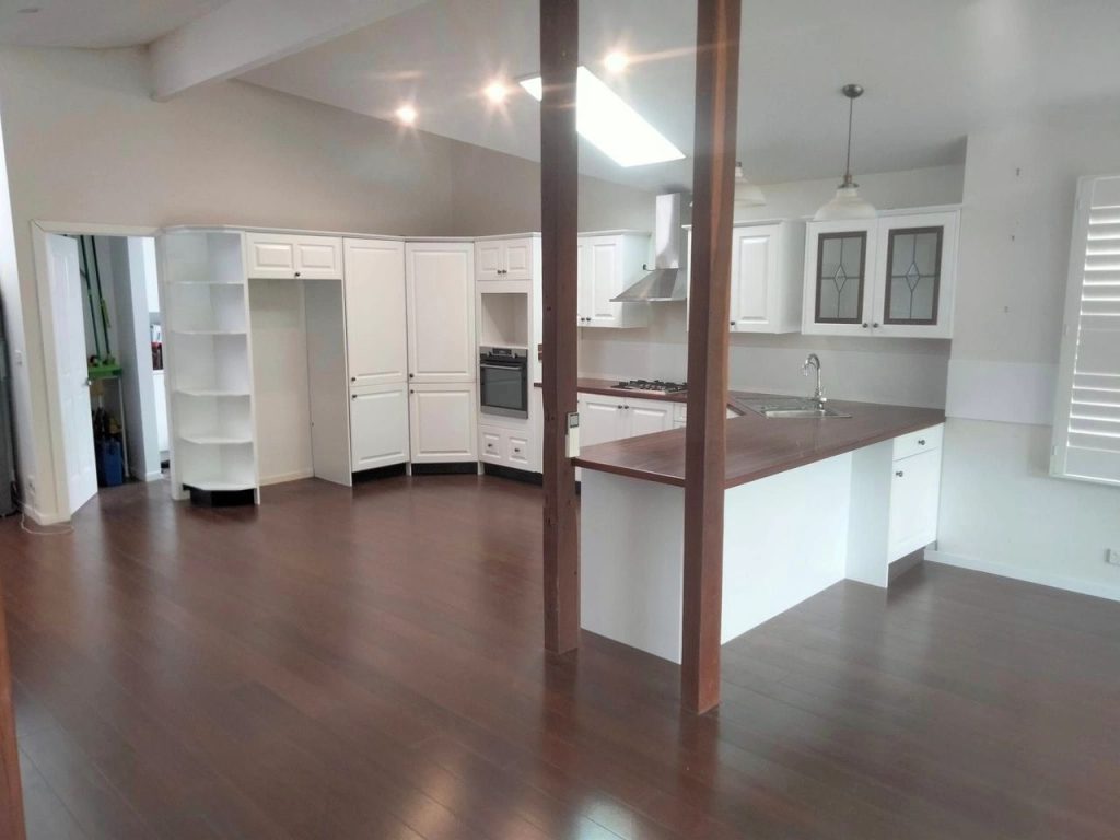 No more timber overload. Satin vivid white cabinets to help the timber benchtop, floors and posts pop.